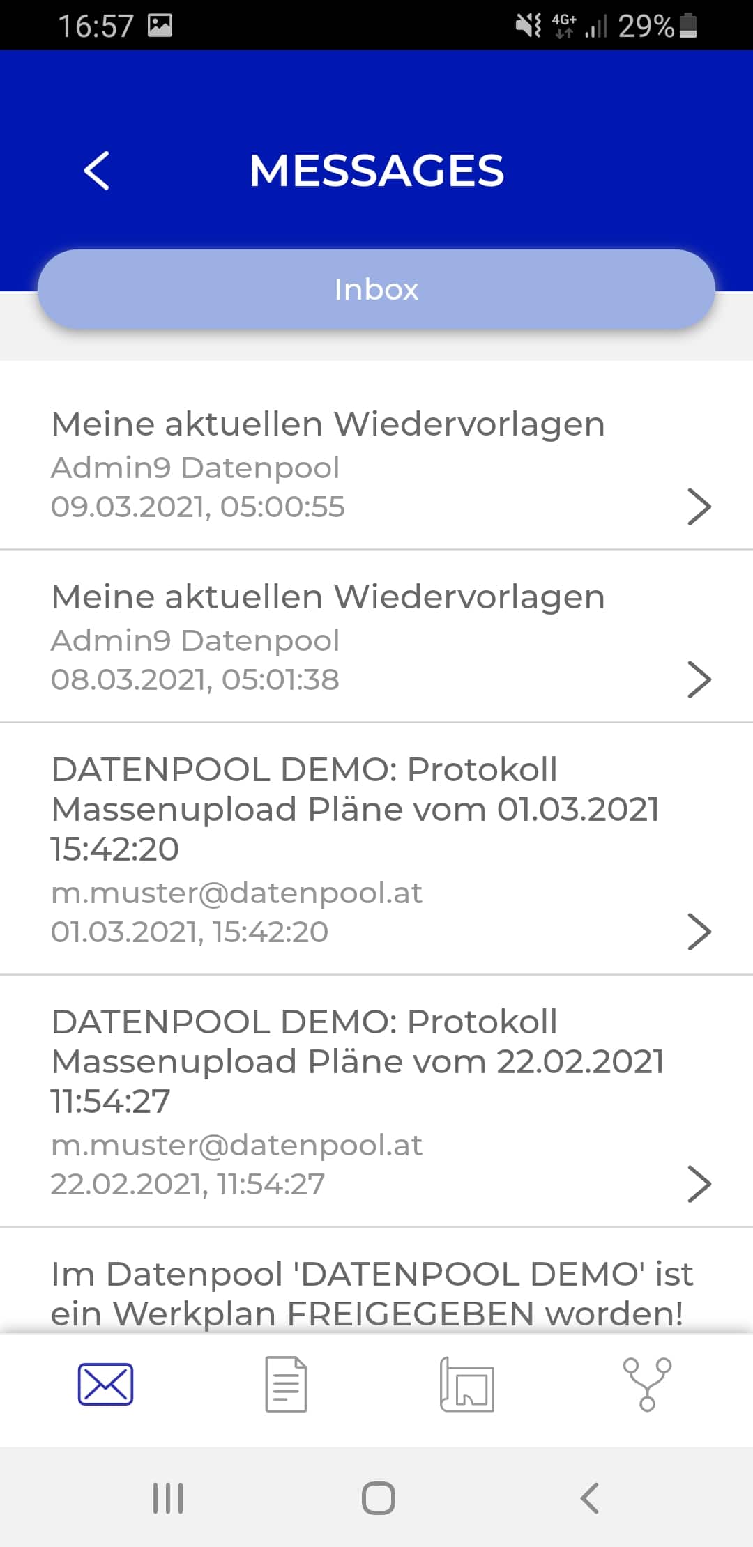 The new version of the Datenpool app offers the option to change or reset your password. Moreover, the messages and settings views have received a visual update.